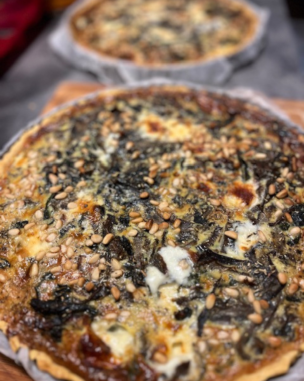 Ingrédients : Farine de pois chiche, fécule de pomme de terre, huile oliveoeufs, crème de riz, aromates, courges, pecorino, Blettes oignons.